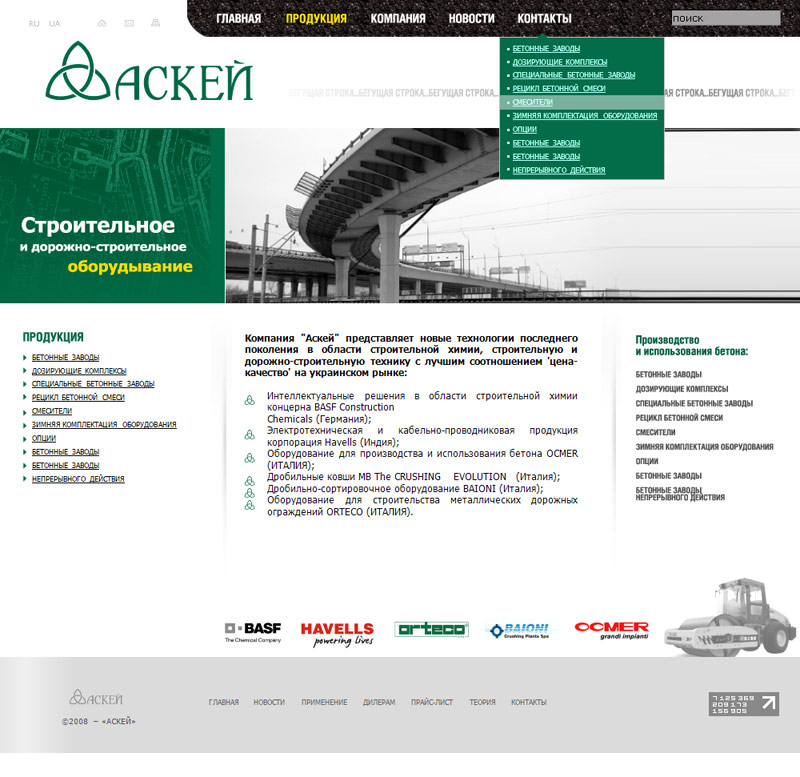 Описание сайта:Компания «Аскей» создана 2005 году, как официальный дилер концерна BASF Construction Chemicals по продажам и техническому сопровождению материалов для ремонта и восстановления бетона, защиты, усиления и гидроизоляции конструкций. В 2006 году компания развила свои направления деятельности и на сегодняшний день представляет на рынке Украины: