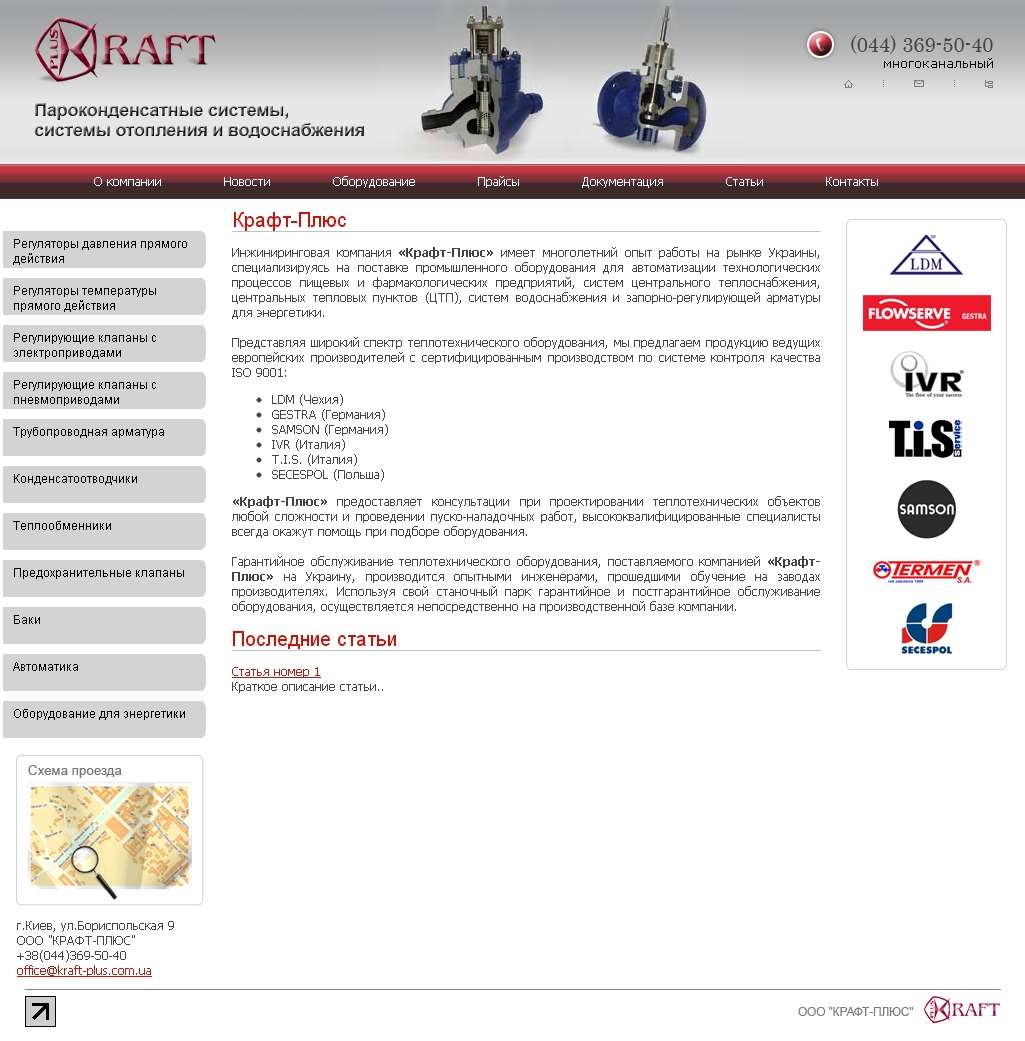 Описание сайта:Инжиниринговая компания «Крафт-Плюс» имеет многолетний опыт работы на рынке Украины, специализируясь на