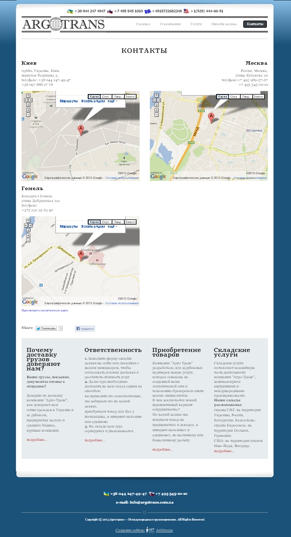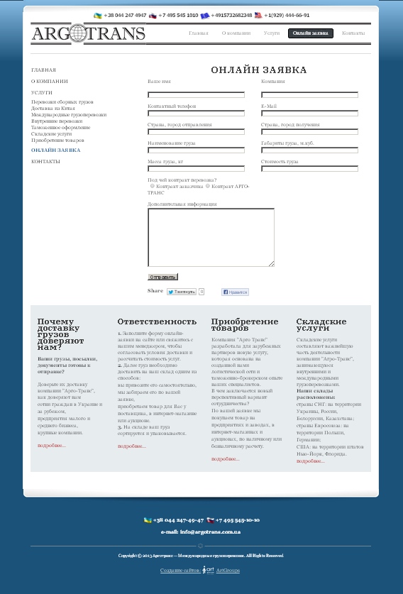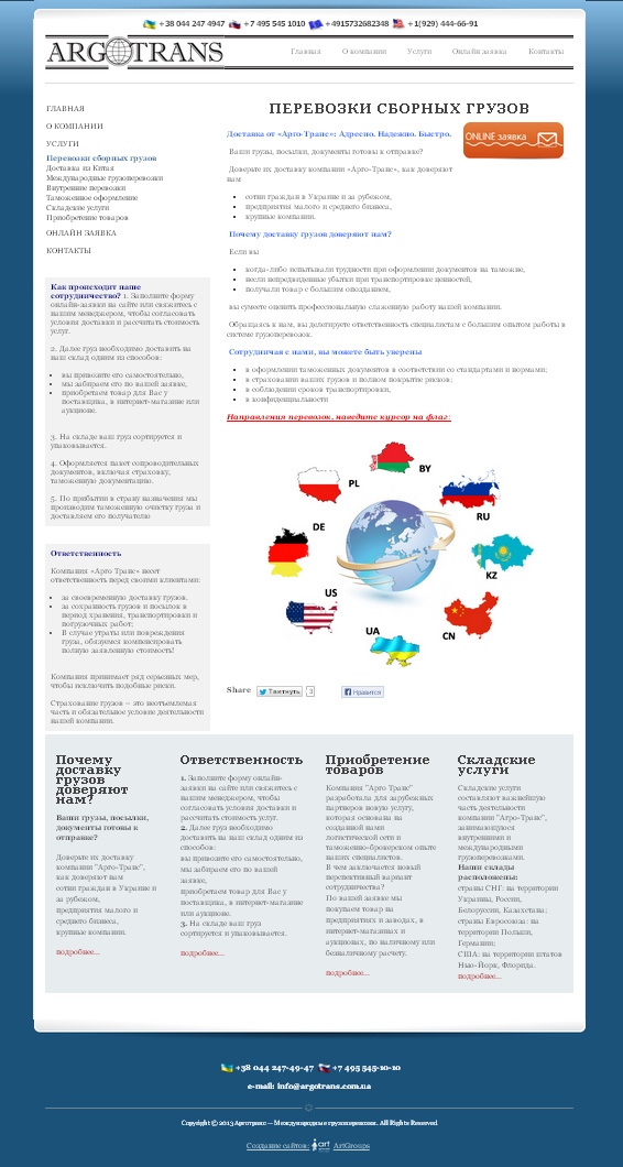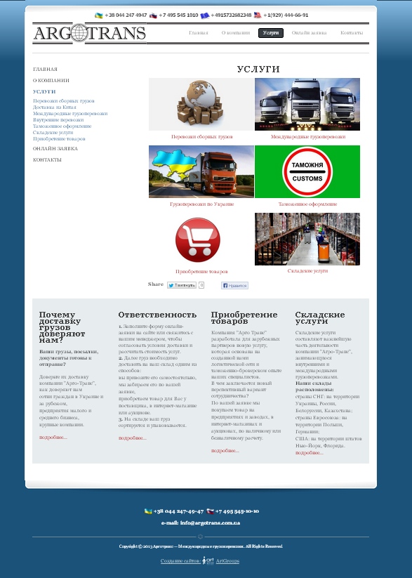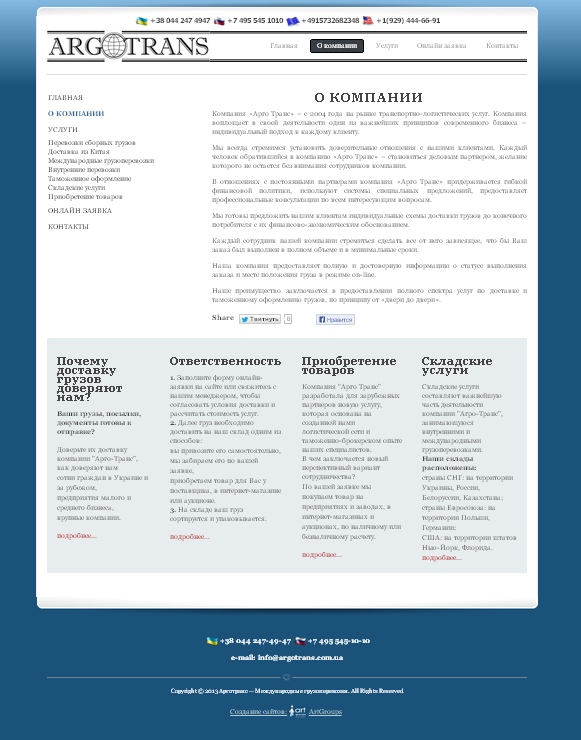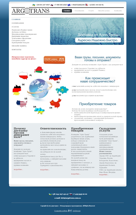 Создание сайта-визитки для компании «Арго Транс» |