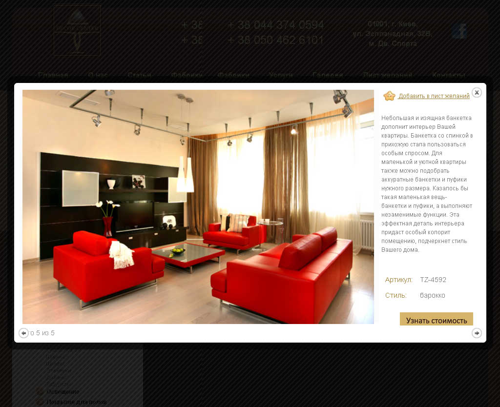 Описание сайта:Компания «Декор Центр» предлагает комплекс услуг "под ключ" по прямым поставкам товаров класса VIP из Европы. Это мебель и освещение, покрытие для полов, межкомнатные и входные двери, сантехника, плитка, декоративные краски и штукатурки, обои, текстиль, аксессуары и посуда. Сделали: