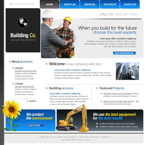 Шаблонные решения дизайна для web-сайтов.Описание:В наше время, говоря о шаблонных сайтах, мы нередко слышим, что такие веб сайты не живут дольше нескольких месяцев. Часто потенциальные клиенты, услышав слово «шаблонный», не хотят продолжать разговор с веб-студией в этом направление. Веб-cтудии, которые создают шаблонные продукты, часто лишены должного уважения в профессиональном сообществе. И, наконец, сайты дешевле 3 000 грн. часто считают не заслуживающими внимания. Вы тоже так думаете?...Да, шаблонные сайты действительно менее привлекательны, но это и есть альтернатива дорогим продуктам. Мы считаем, что не правильно лишать людей возможности этой альтернативы, хоть и не приветствуем веб-сайты такого уровня. Часто людям нужно просто дать информацию о себе или проект делается под промо-акцию (как презинтация в интернет), чтоб дать информацию о ней и все. Зачем тогда под такие задачи веб-сайт с индивидуальным дизайном и сложным функционалом, который обходится человеку в хорошую копеечку. Вспоминается сразу поговорка: На весь товар найдется свой покупатель! Не правда ли? Поэтому наша команда не исключила эту возможность, упростив это шаблонным веб-дизайном, но верстая это на собственную систему управления сайтом (CMS) с минимальным набором функционала (програмных модулей). Макет: «Building Co» Тематика: Строительство