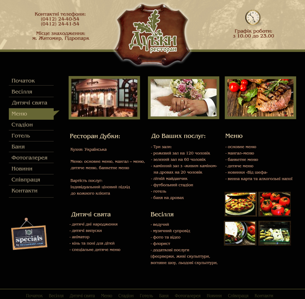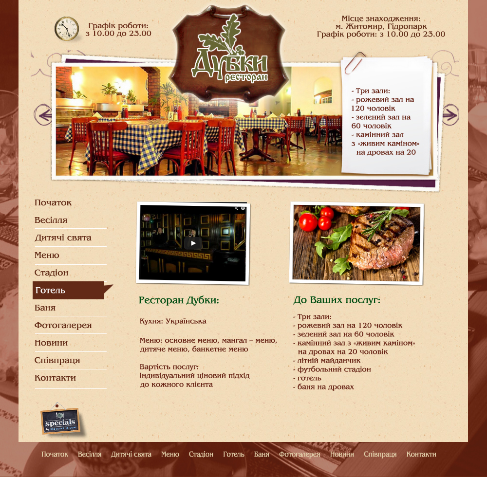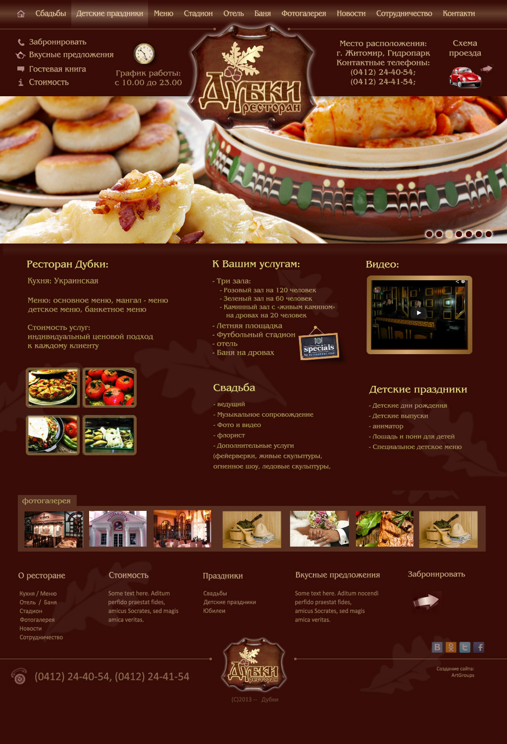Разработка сайта для Ресторана «ДУБКИ» Гидропарк. Житомир. |