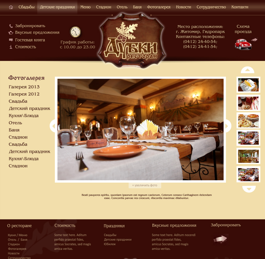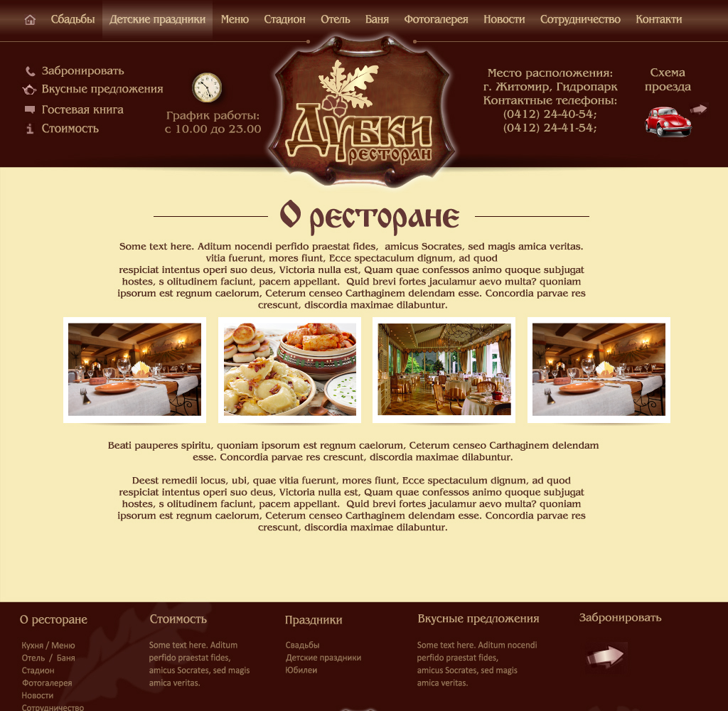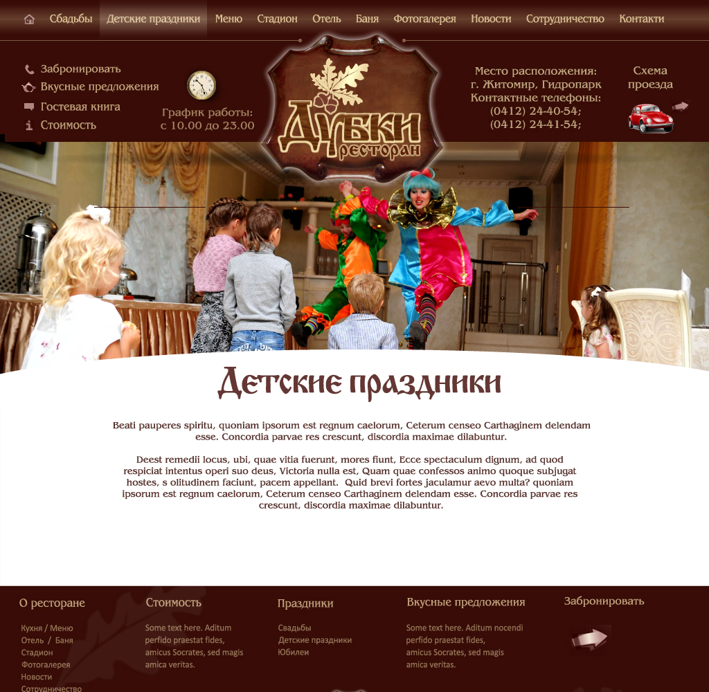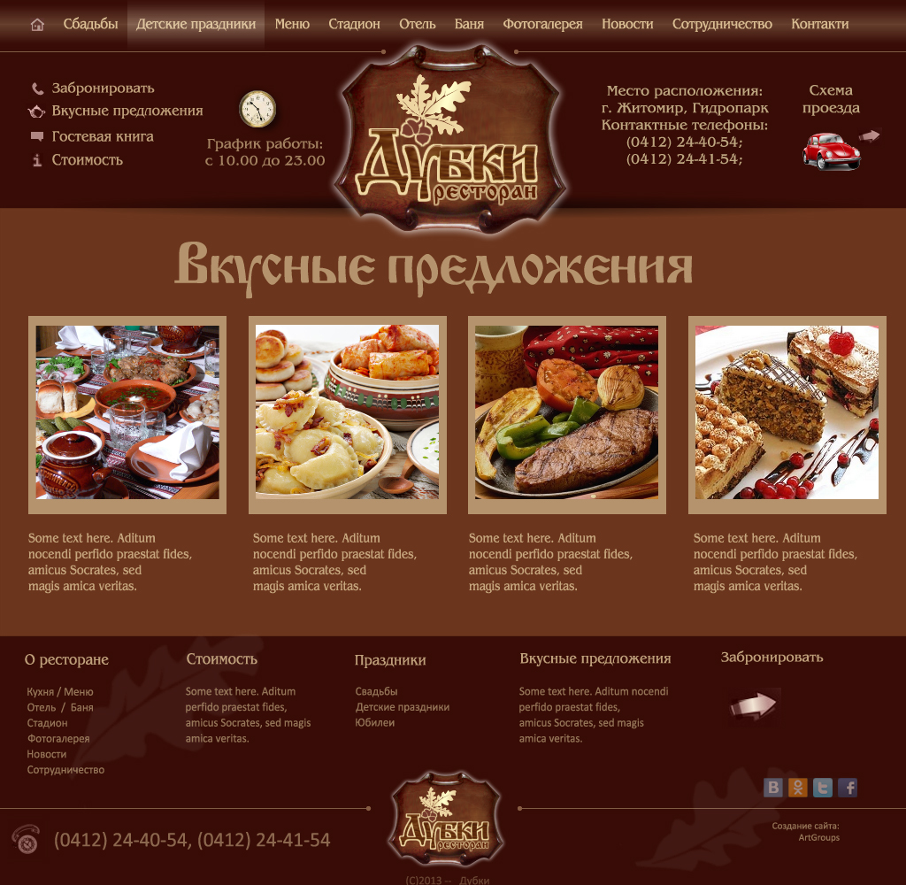 Разработка сайта для Ресторана «ДУБКИ» Гидропарк. Житомир. |