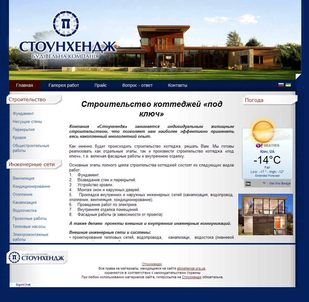 Описание сайта:Компания «Стоунхендж» занимается индивидуальным жилищным строительством, что позволяет нам наиболее эффективно применять весь накопленный многолетний опыт. Как именно будет происходить строительство коттеджа, решать Вам. Мы готовы реализовать как отдельные этапы, так и произвести строительство коттеджа «под ключ», т.е. включая фасадные работы и внутреннюю отделку.